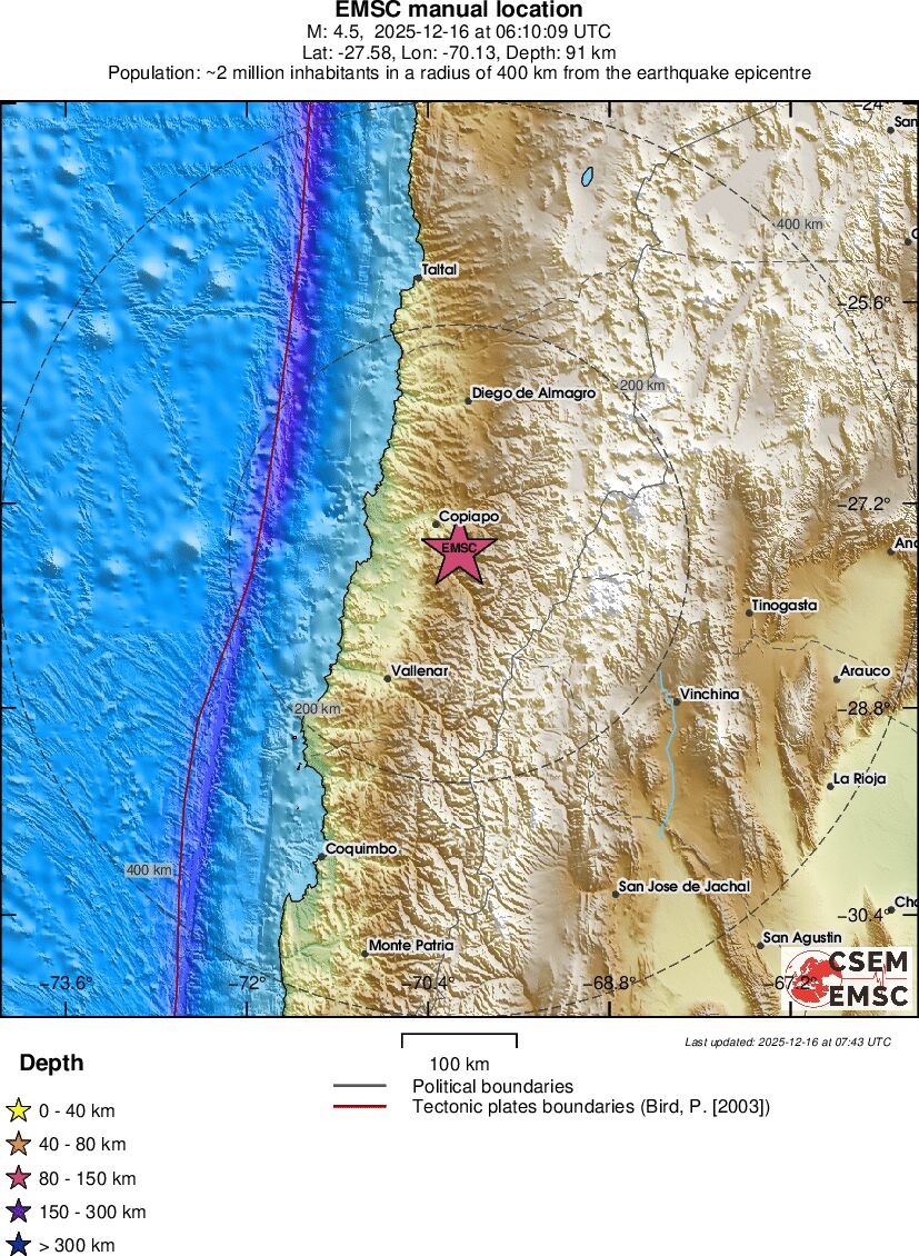 | 4.5 | 92.2 | 5382 | 23:10 | Enllaç | Terratrèmol lleuger- ATACAMA, CHILE - Ahir |