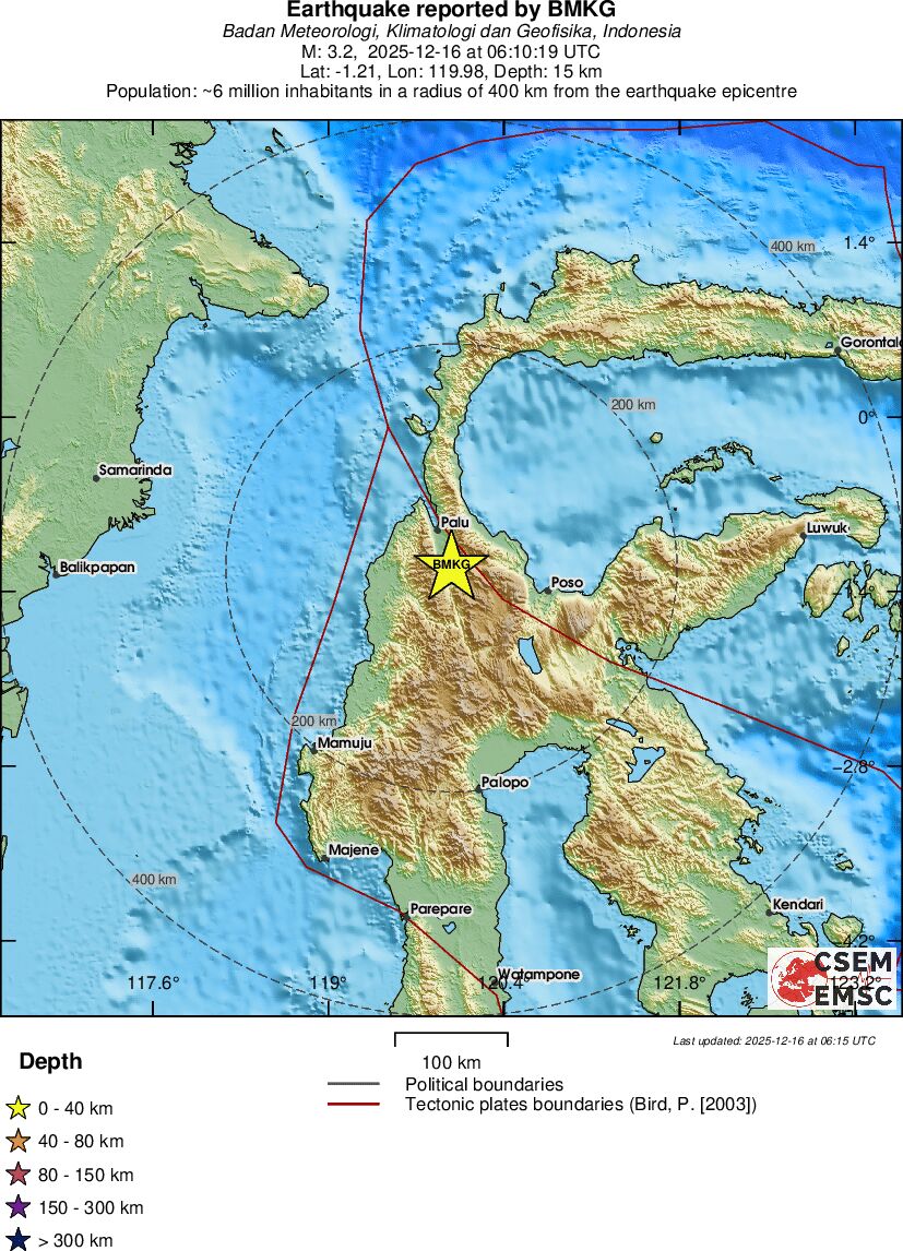 | 3.2 | 15 | 8457 | 23:10 | Enllaç | Terratrèmol menor- SULAWESI, INDONESIA - Ahir |