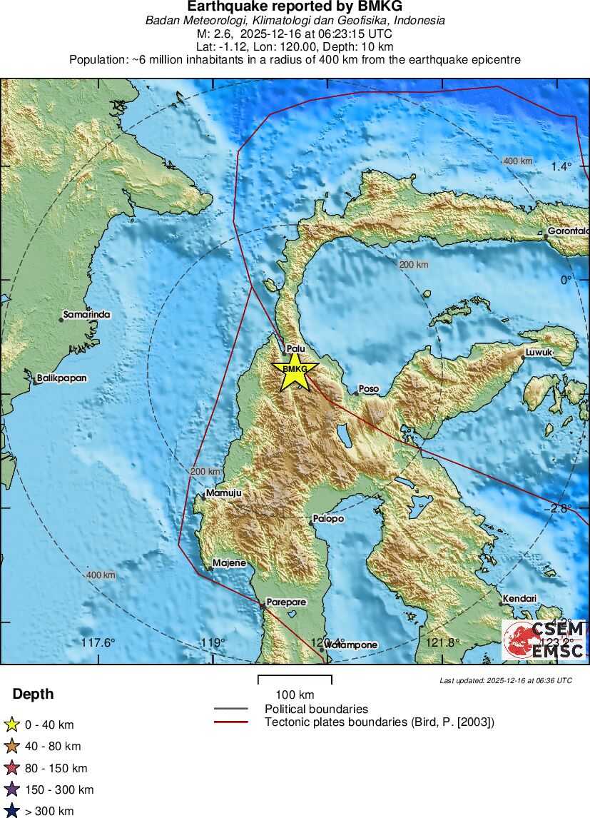 | 2.6 | 10 | 8451 | 23:23 | Enllaç | Terratrèmol menor- SULAWESI, INDONESIA - Ahir |
