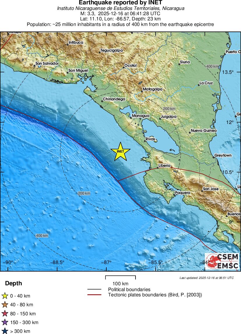 | 3.3 | 23 | 2495 | 23:41 | Enllaç | Terratrèmol menor- NEAR COAST OF NICARAGUA - Ahir |