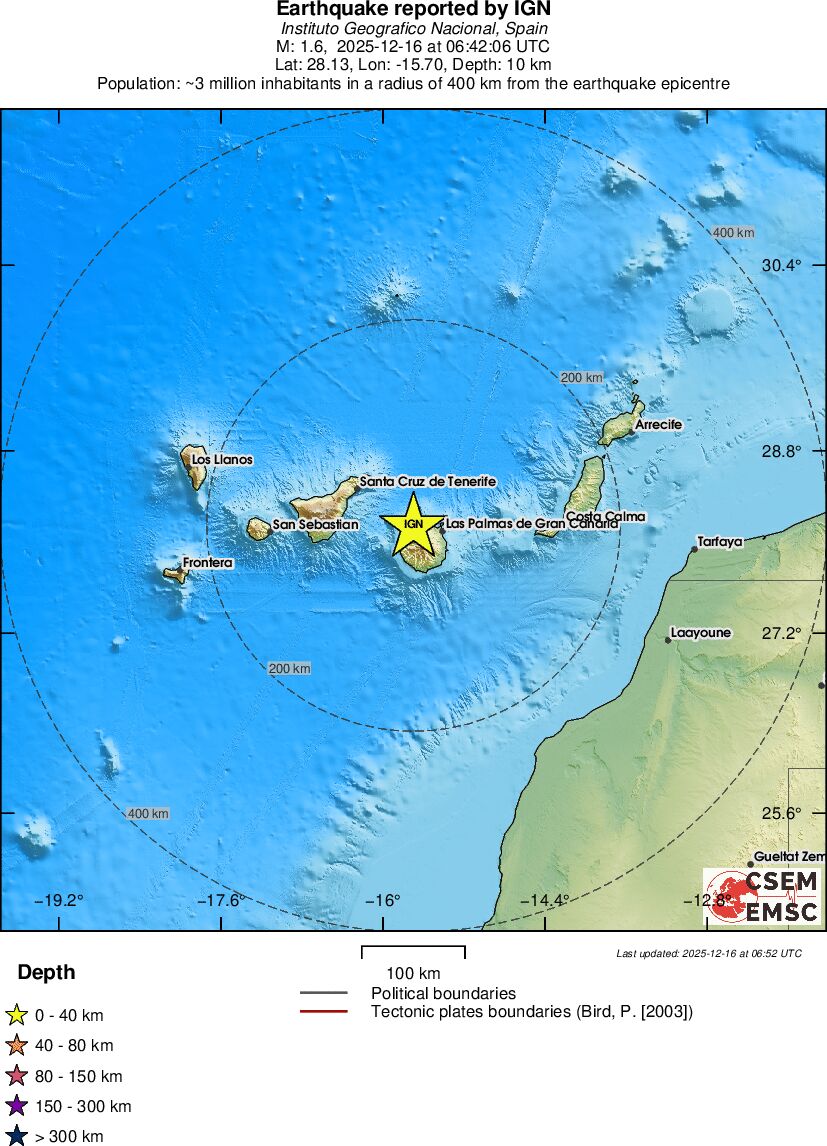 | 1.6 | 10.5 | 4789 | 23:42 | Enllaç | Terratrèmol menor- CANARY ISLANDS, SPAIN REGION - Ahir |