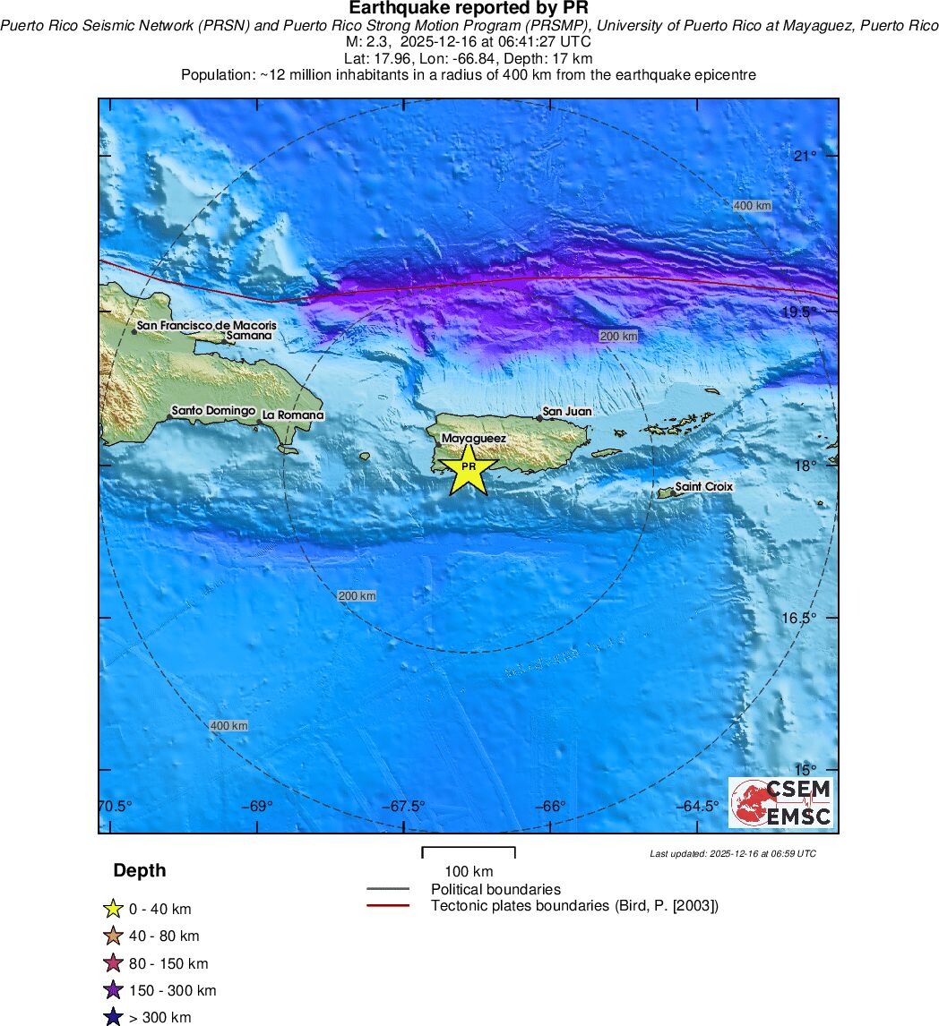 | 2.3 | 16.6 | 2784 | 23:41 | Enllaç | Terratrèmol menor- PUERTO RICO - Ahir |