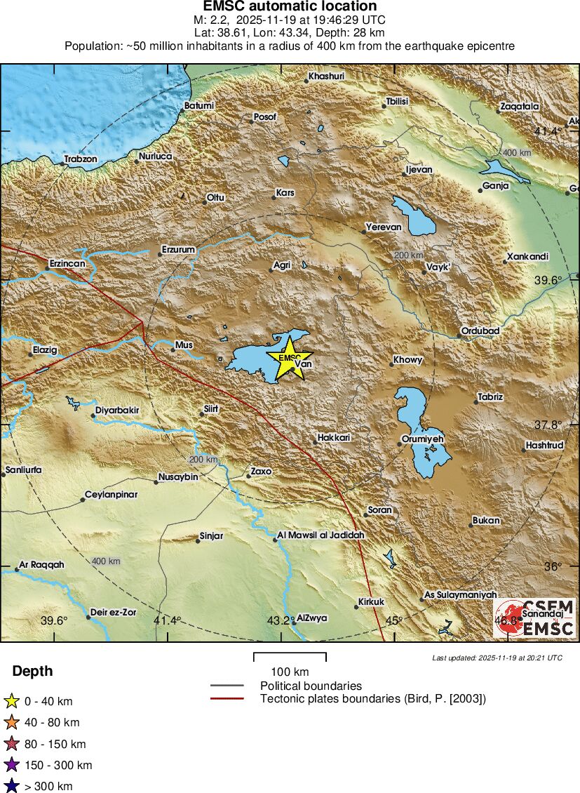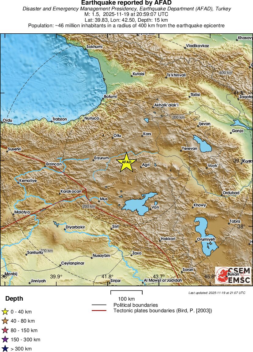 | 1.5 | 14.6 | 6260 | 13:59 | Enlace | Terremoto pequeño- EASTERN TURKEY - Hoy |