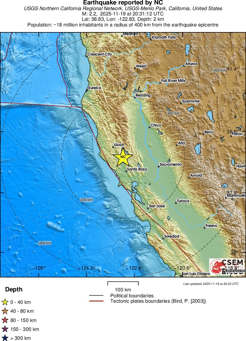 | 2.2 | 1.9 | 1065 | 13:31 | Enlace | Terremoto pequeño- NORTHERN CALIFORNIA - Hoy |