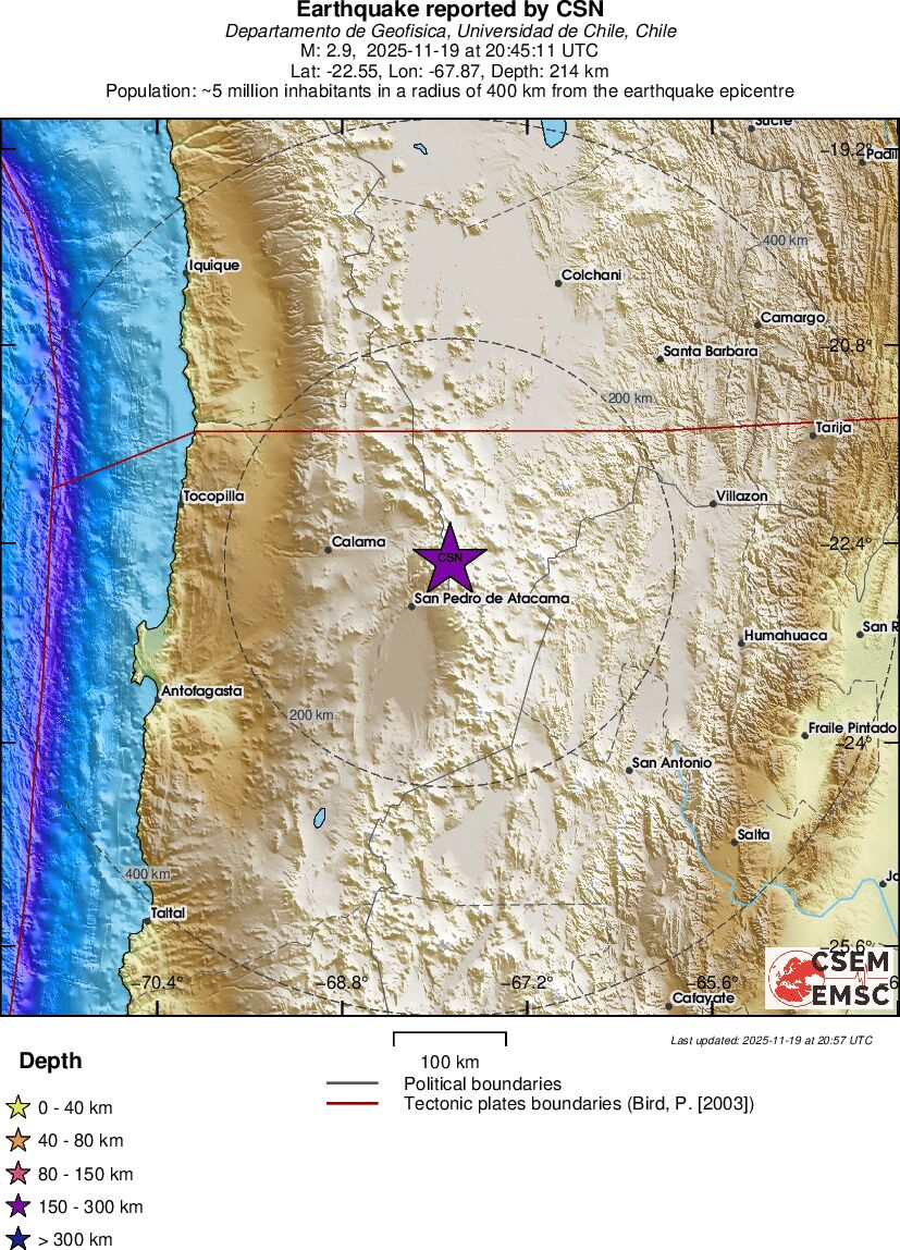 | 2.9 | 213.7 | 5128 | 13:45 | Enlace | Terremoto pequeño- ANTOFAGASTA, CHILE - Hoy |
