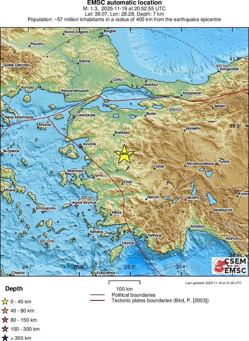 | 1.5 | 7 | 5938 | 13:21 | Enlace | Terremoto pequeño- WESTERN TURKEY - Hoy |